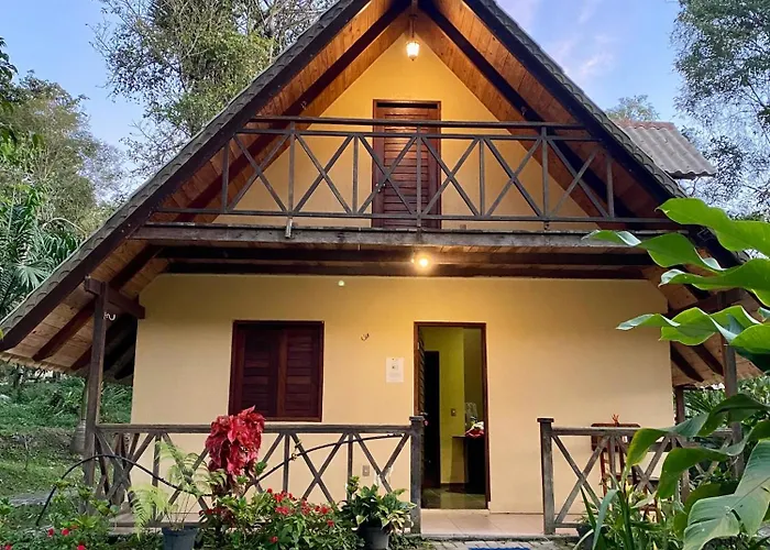 Chale Suico - Chales Belo Monte - Sitio Belo Monte, som har TV med satellitkanaler och plattskärms-TV med satellitkanaler samt uteplats och balkong, erbjuder gästerna utsikt över bergen. I badrummet finns även en separat toalett och en dusch. Det finns också toalettartiklar, badlakan och handdukar för gästernas komfort.